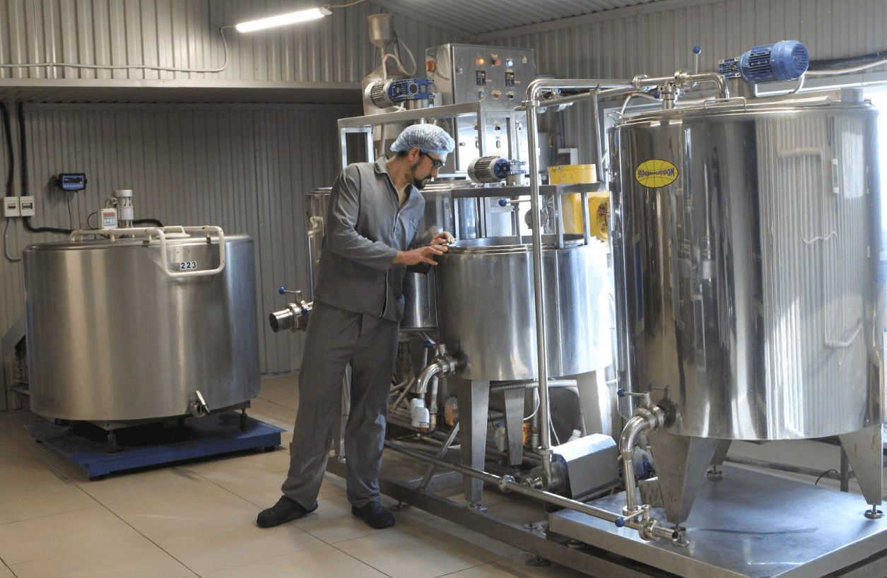 Технологический процесс производства основного продукта экофермы «Диво» — мягких сыров, достаточно сложный. Сначала сырое молоко попадает в специальную емкость, так называемый «танк», где выдерживается некоторое время, перемешивается и поступает в приемное отделение. Это тоже емкость, но оборудованная весами.